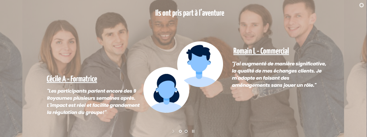 "Les participants parlent encore des 9 Royaumes plusieurs semaines après. L'impact est réel et facilite grandement la régulation du groupe!"